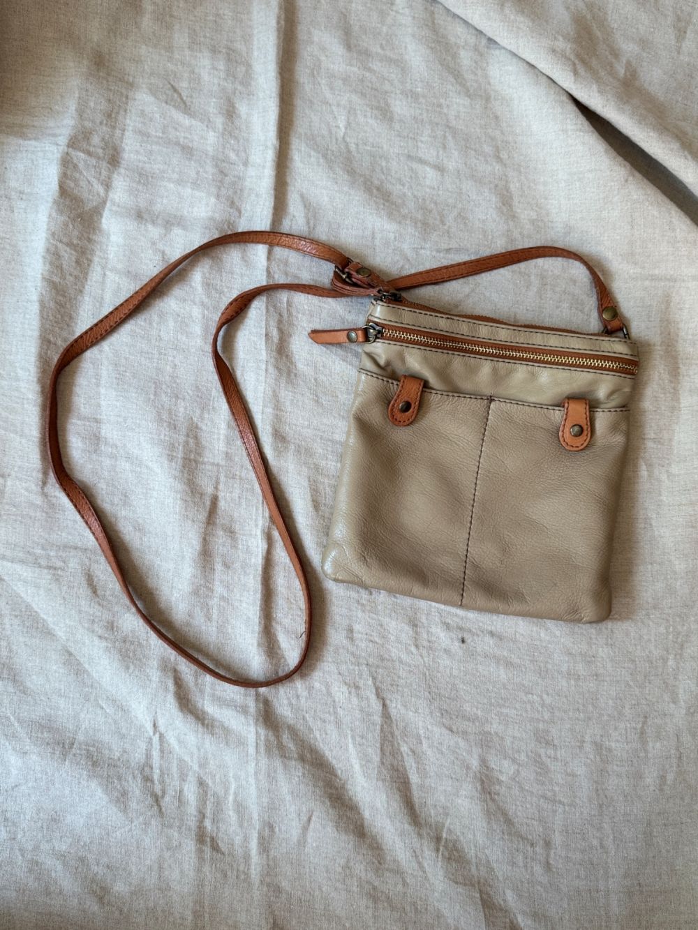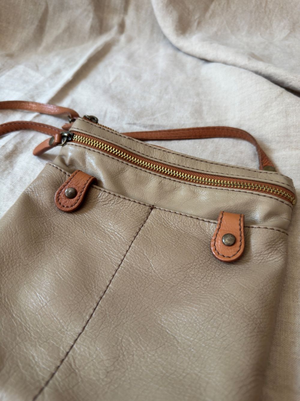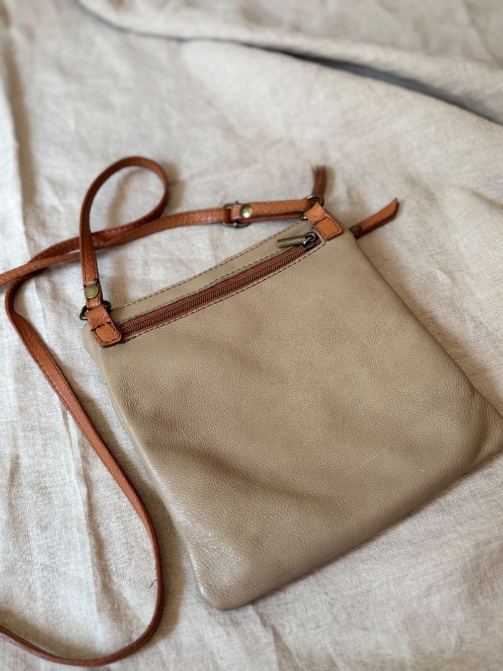 Skórzana listonoszka na regulowanym pasku. Posiada 3 zasuwane na zamek przegródki, z czego jedna jest w środku oraz dwie zapinane na guzik.