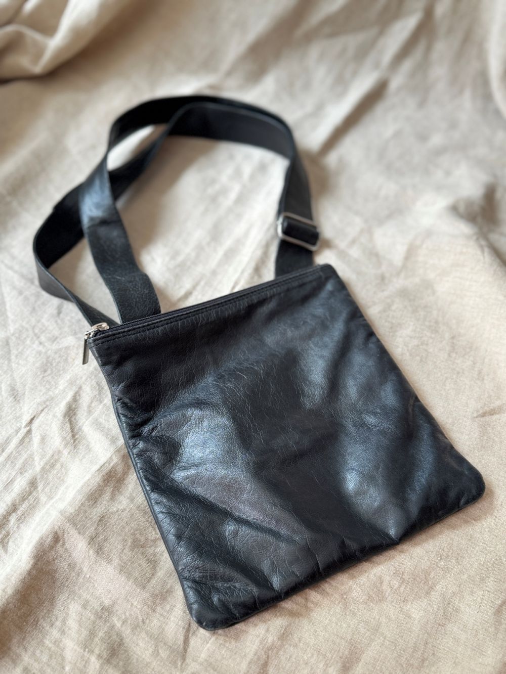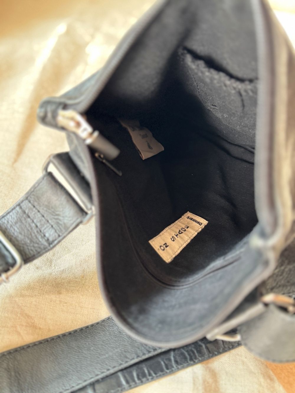 Czarna listonoszka, posiada w środku dwie przegródki z czego jedna jest na zamek.