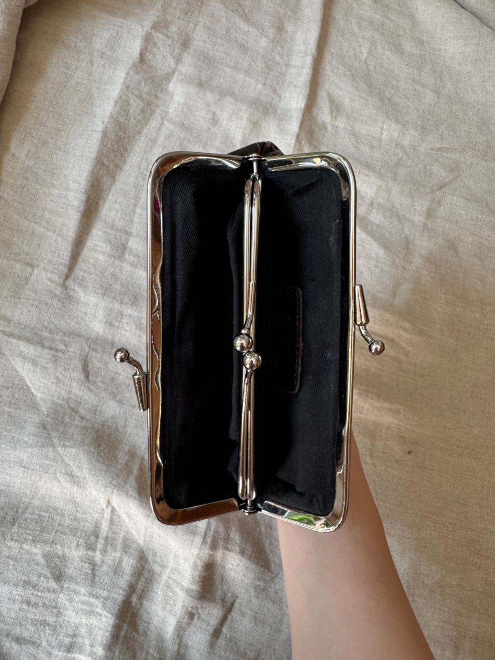 Materiałowa mała torebka zapinana na bigiel w stylu vintage. Świetnie sprawdzi się jako dodatek do eleganckiej stylizacji.