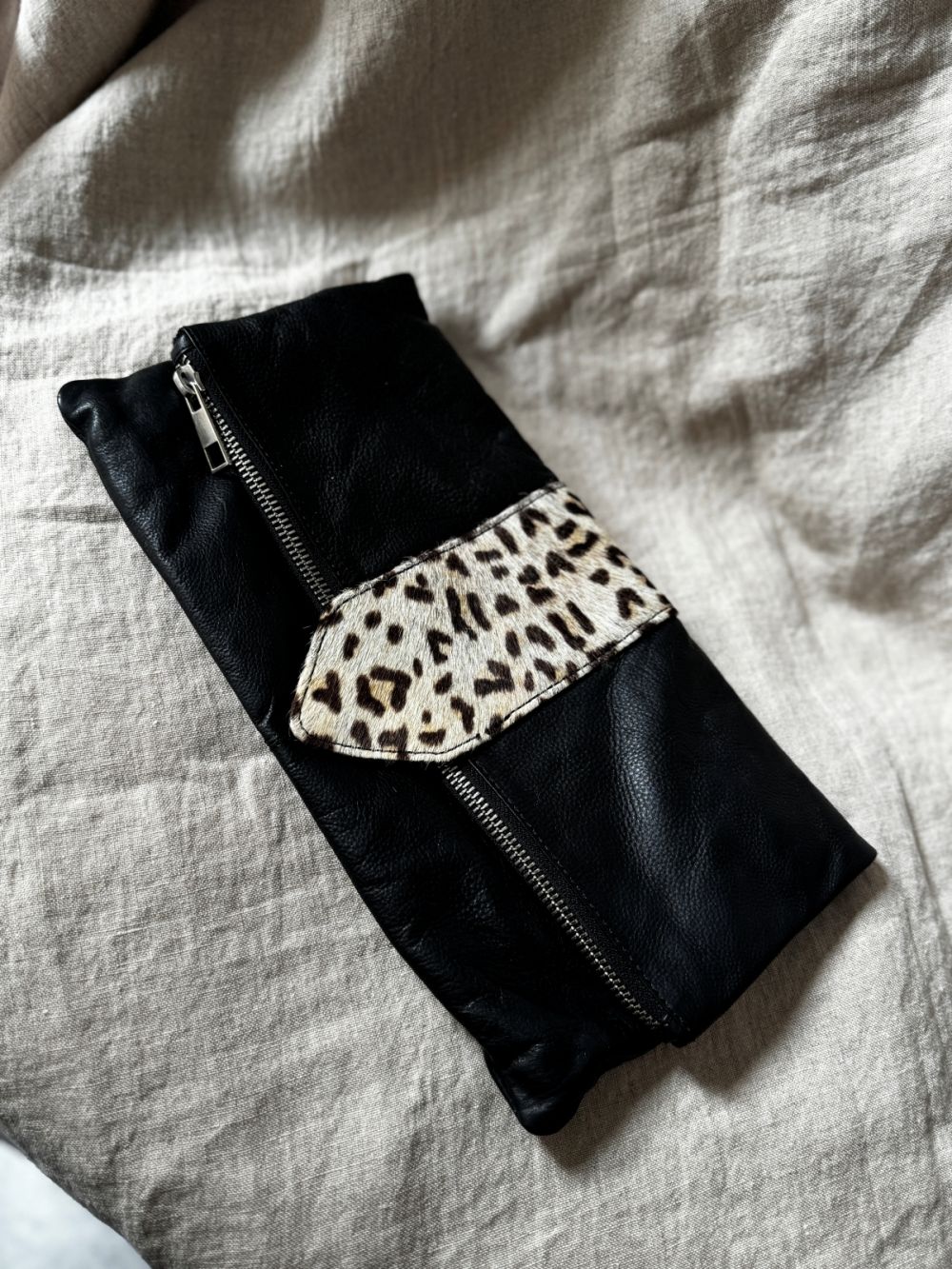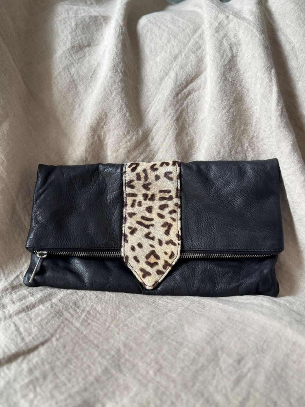 Skórzana torebka AMUST z zapięciem w panterkę