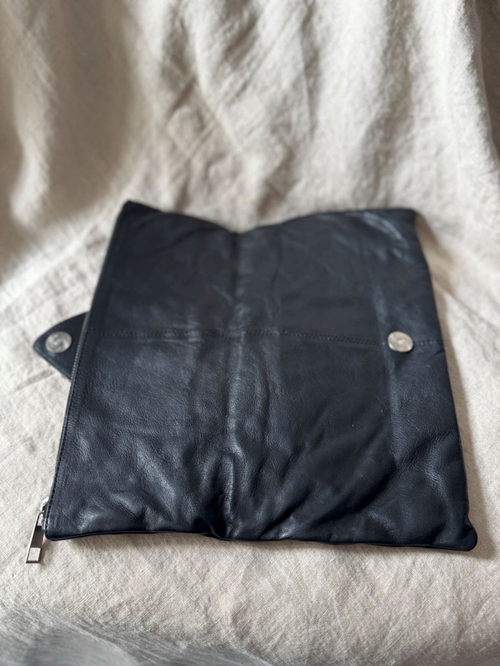Mała skórzana torebka do ręki. Zapięcie z szorstkiej skóry. Posiada jedną kieszeń.