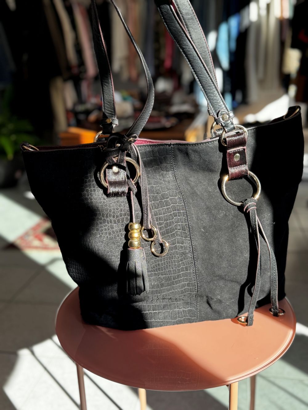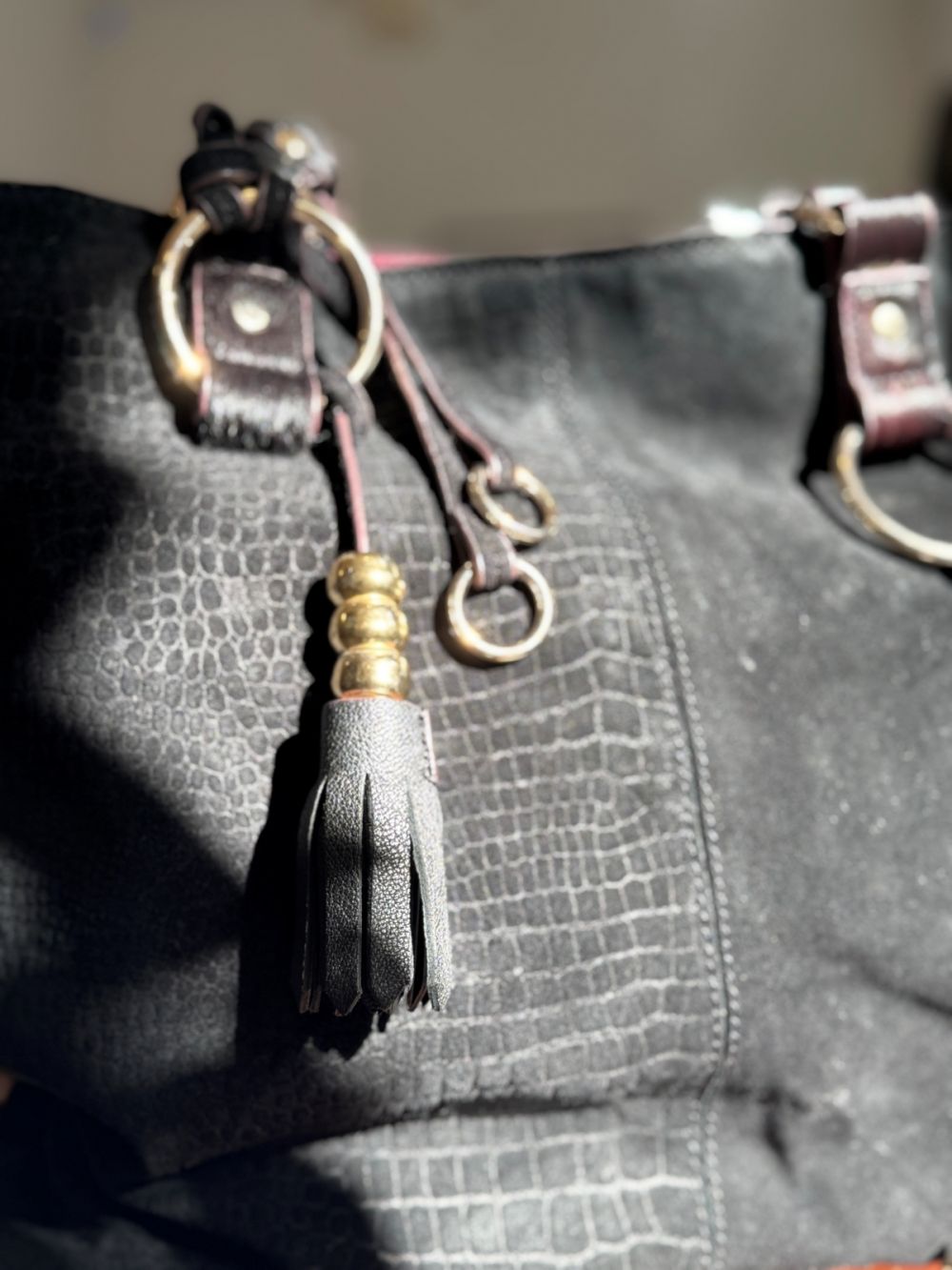Duża torebka od marki River Island, idealnie nadaje się do pracy. Posiada 4 przegródki. Po bokach przymocowane są dwie wiszące ozdoby które nadają torebce unikalnego uroku.