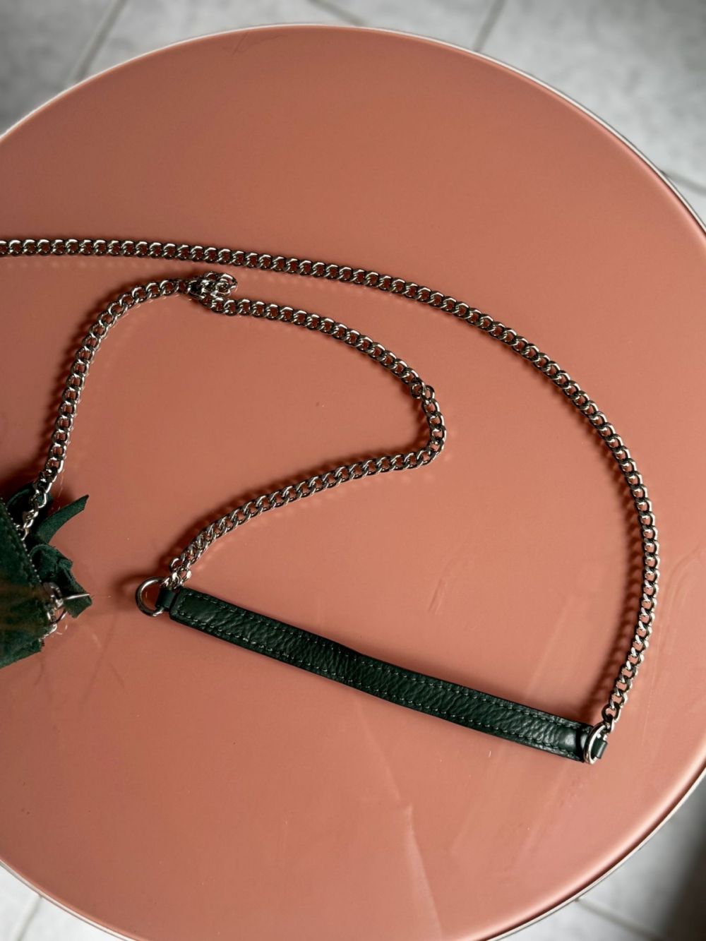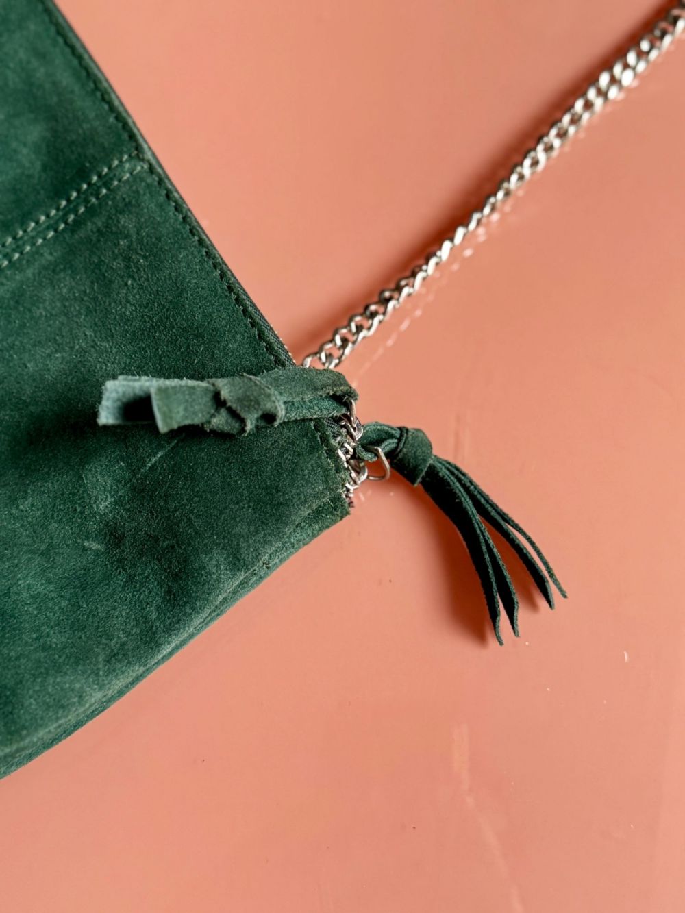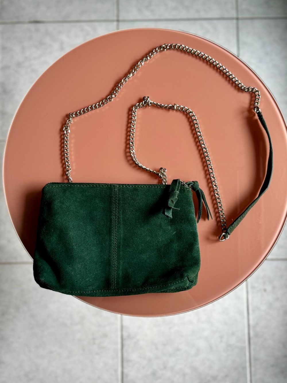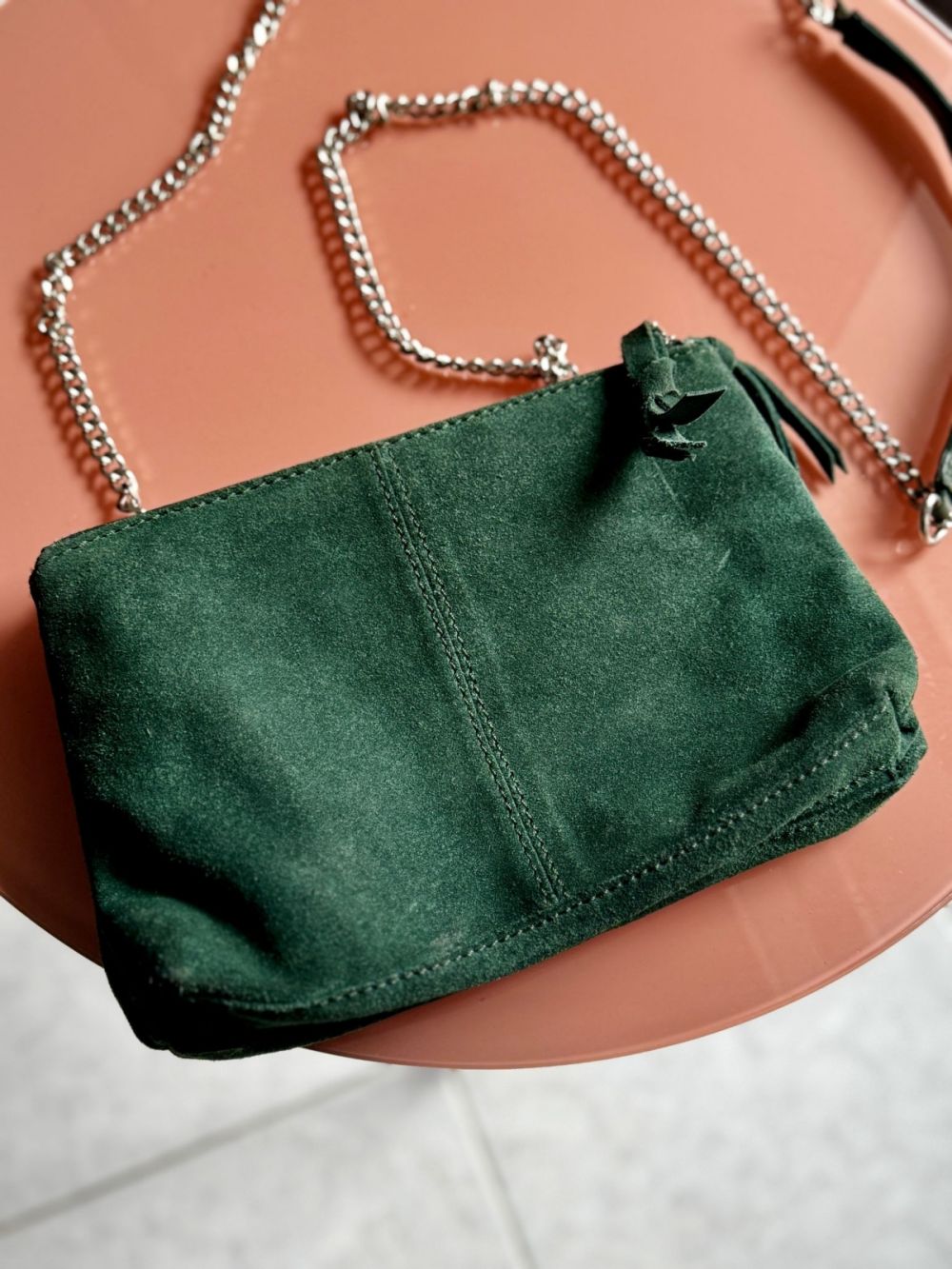 Zamszowa torebka w odcieniu butelkowej zieleni