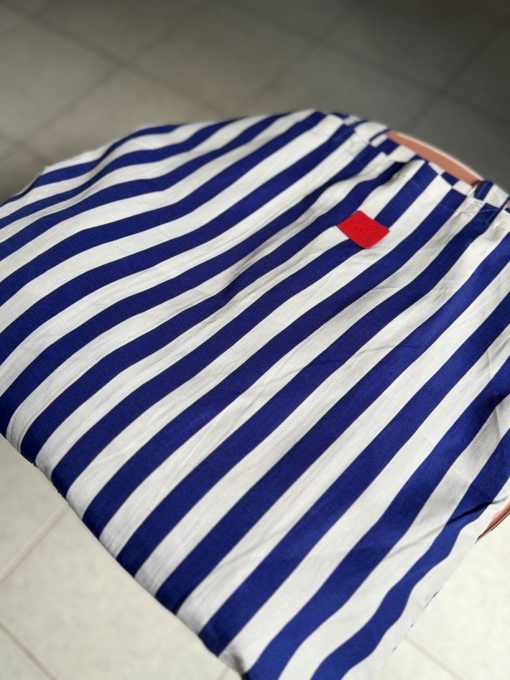 Lekka i praktyczna torba typu shopper marki Adax, wykonana z wysokiej jakości materiału tekstylnego. Klasyczny wzór w granatowo-białe pasy przełamany został subtelnym, kontrastowym detalem, który dodaje całości nowoczesnego charakteru. Pojemna forma i wygodne, długie uchwyty sprawiają, że idealnie sprawdzi się na co dzień – na zakupy, plażę czy szybkie wyjścia.