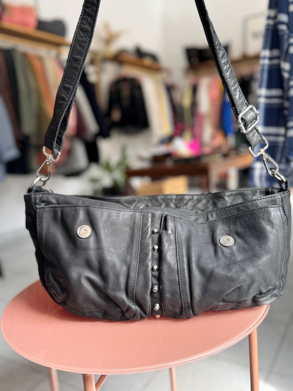 Torebka Unlimit Melody to połączenie klasycznej elegancji z nutą nowoczesnego, miejskiego stylu. Wykonana z miękkiej, naturalnej skóry, zachwyca swoją formą i delikatnie marszczoną fakturą, która nadaje jej wyjątkowego charakteru. Jej metalowe ćwieki dodają jej Rockowego wyglądu.