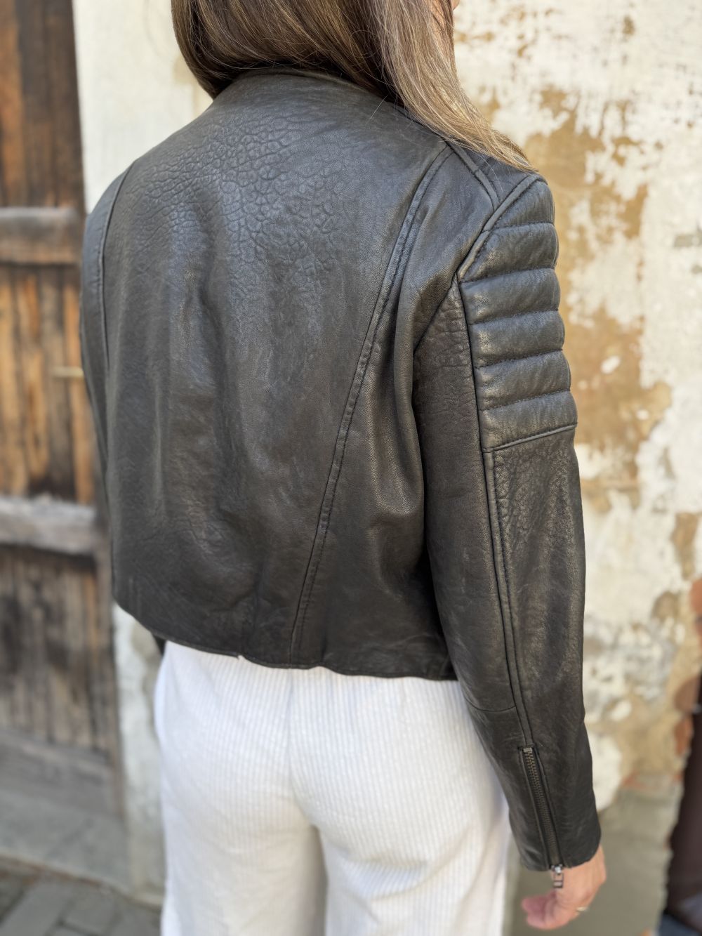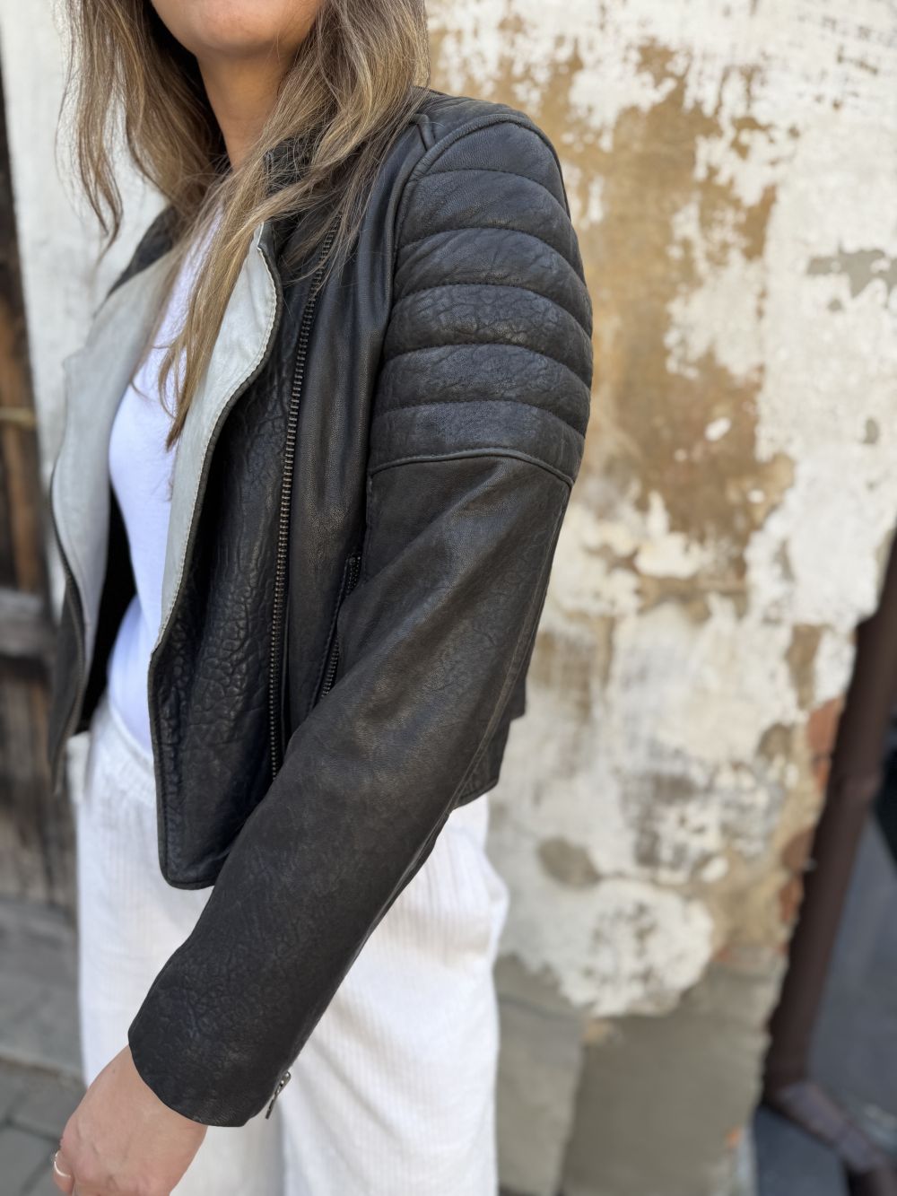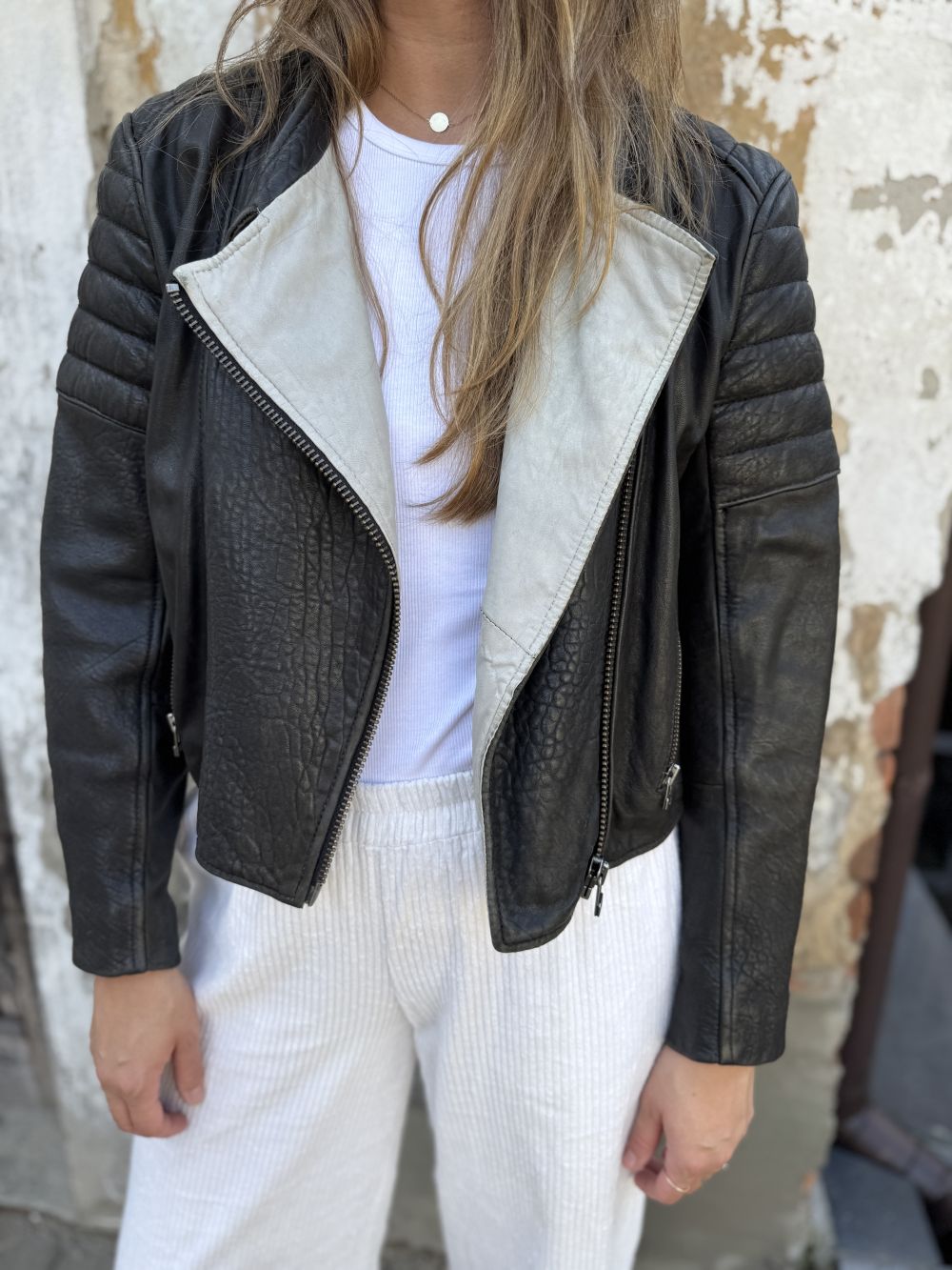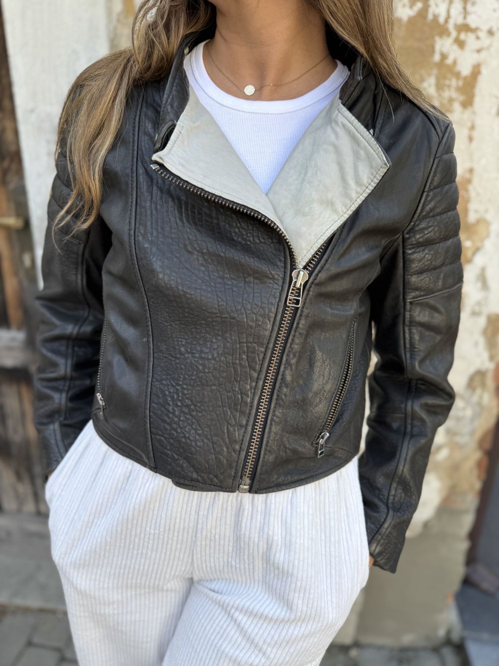 Skórzana kurtka marki InWear. Posiada grubą skórę, dzięki czemu idealnie nadaje się na jesienną pogodę.