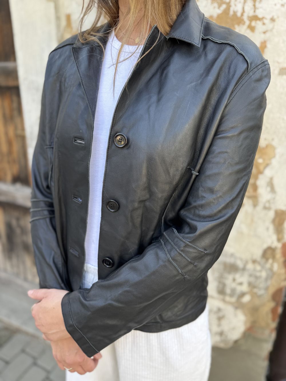 Skórzana kurtka w stylu Vintage. Dzięki klasycznemu kołnierzowi i lekko dopasowanemu krojowi kurtka świetnie zaprezentuje się w stylizacjach z jeansami jak i w bardziej eleganckich zestawieniach. Miękka skóra gwarantuje komfort noszenia.