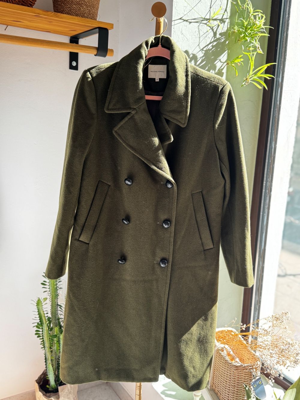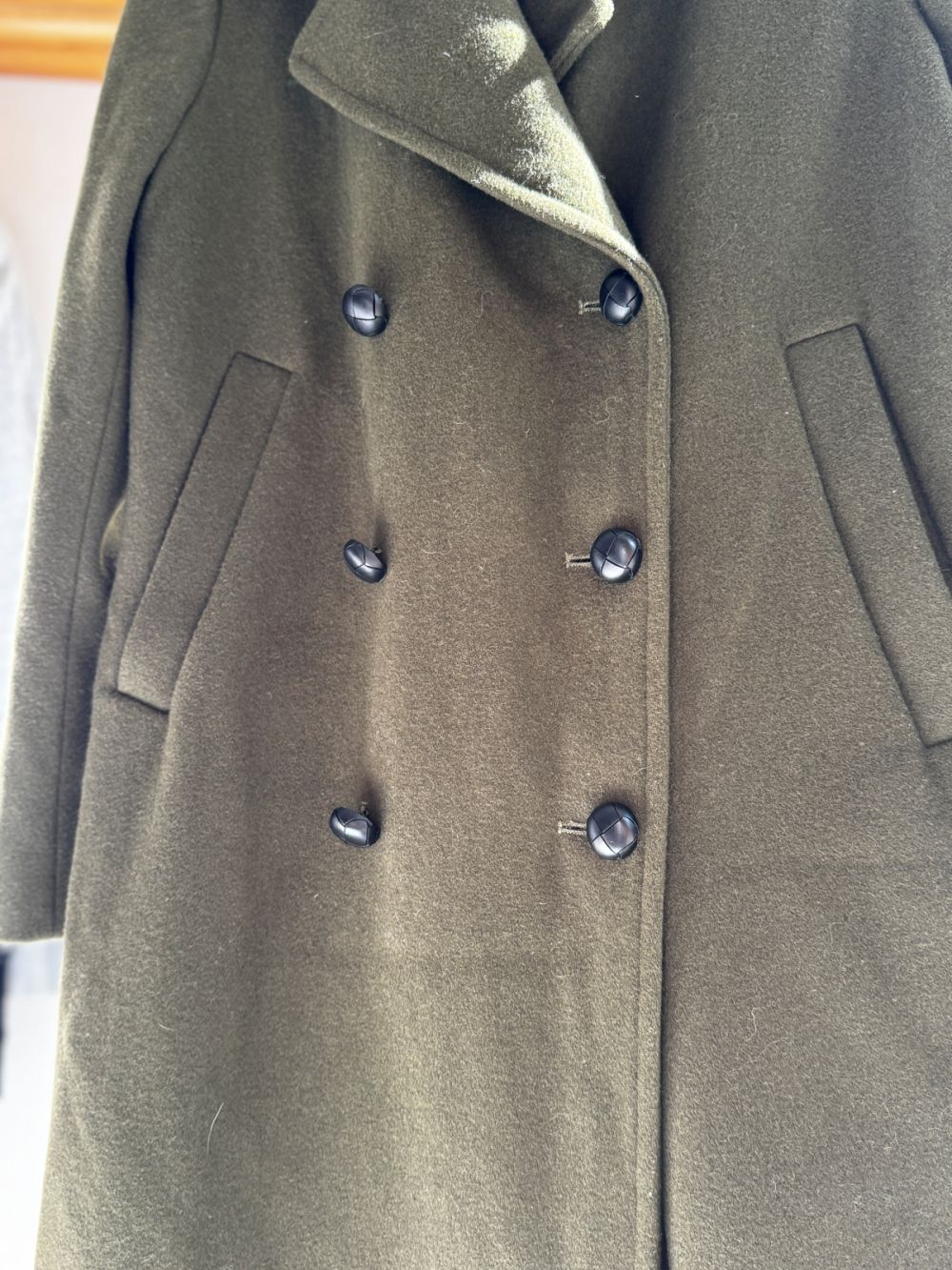 Ciepły płaszcz z wełną marki Second Female. Idealny na zimne dni. Materiał przyjemny w dotyku.