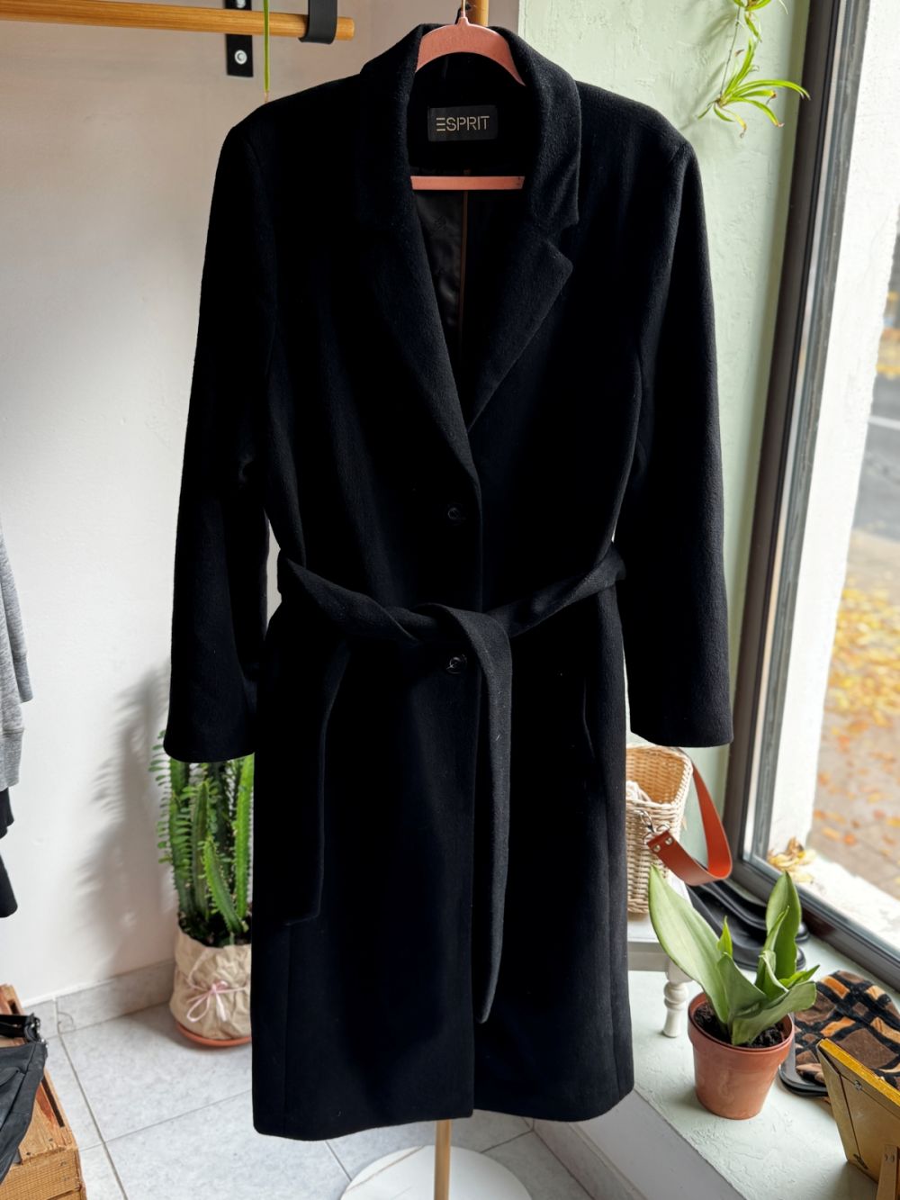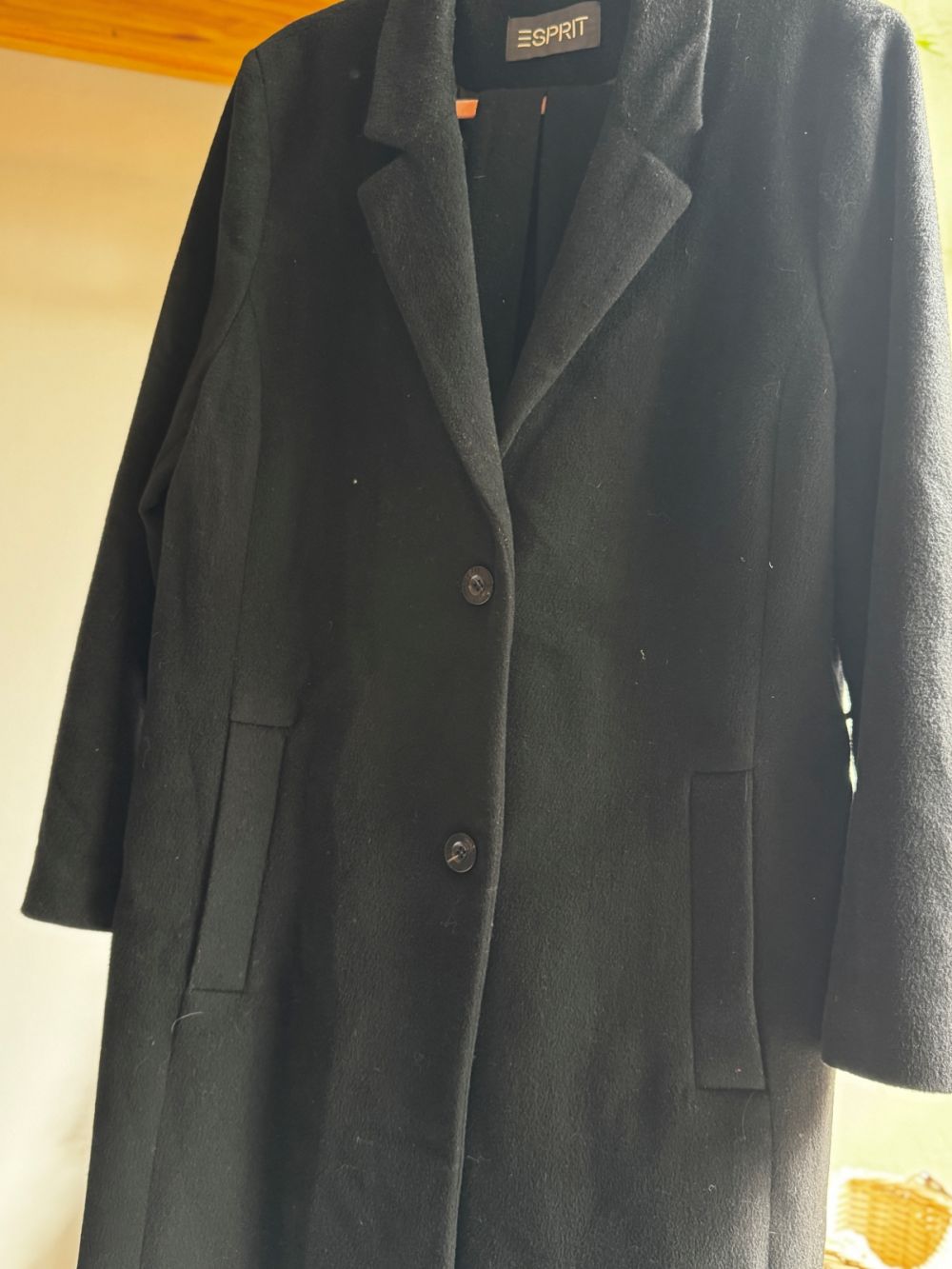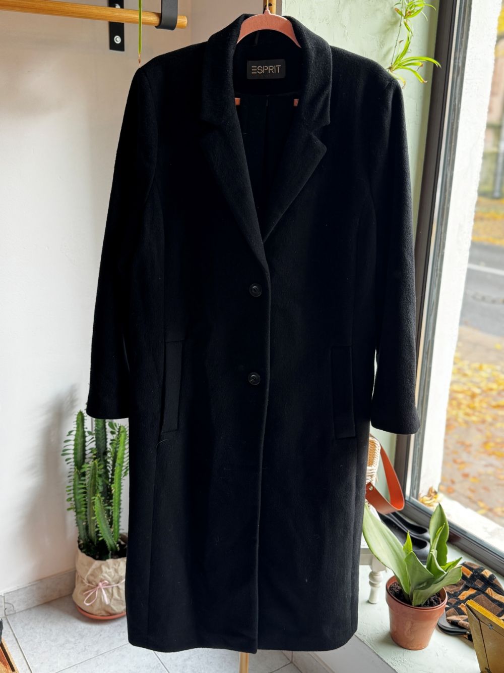 Piękny i długi płaszcz od marki Esprit. Można nosić go zarówno z paskiem jak i bez. Idealny dla wysokich pań.