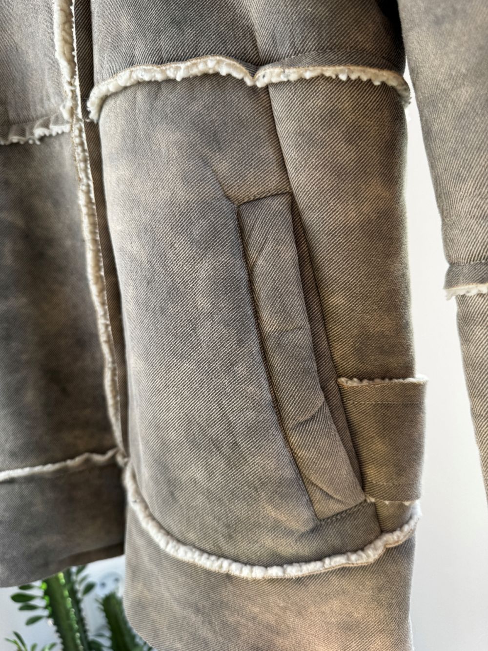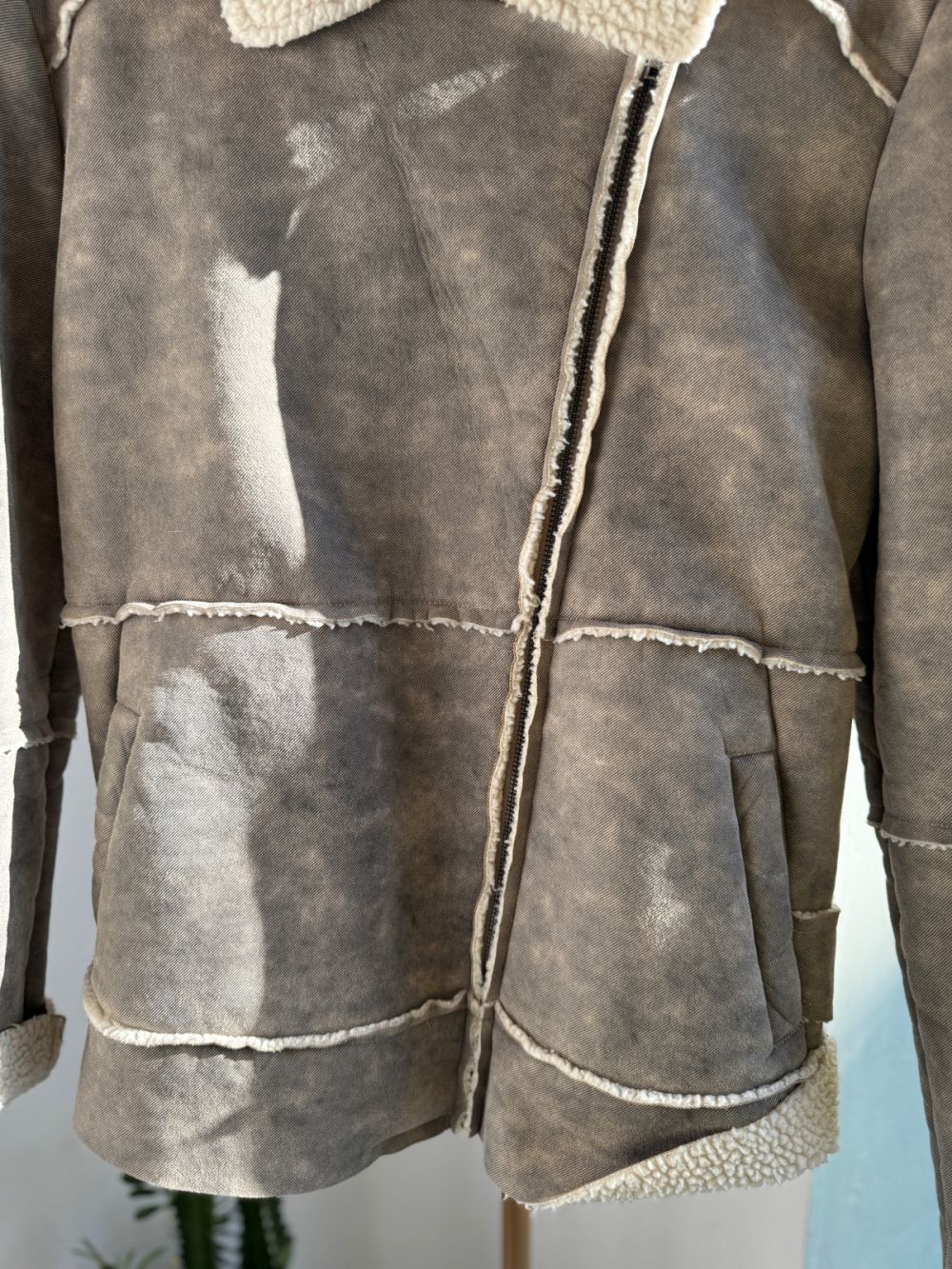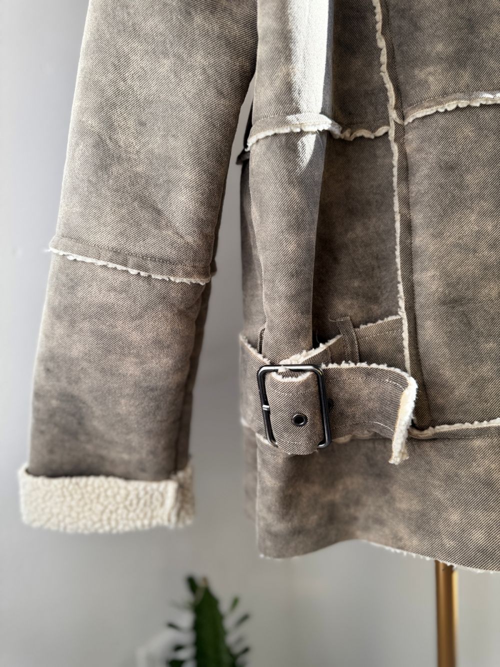 Ciepła kurteczka ze sztucznego futra w środku. Z zewnątrz jest w stylu "patchwork" co dodaje jej oryginalności. Z tyłu posiada dwa paseczki do regulowania szerokości.