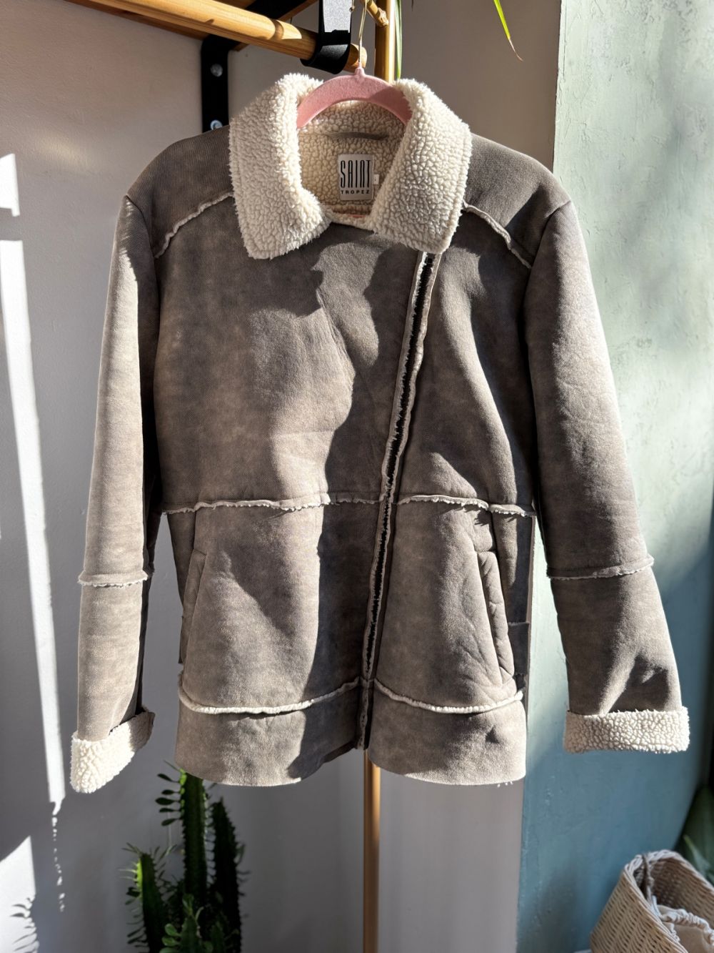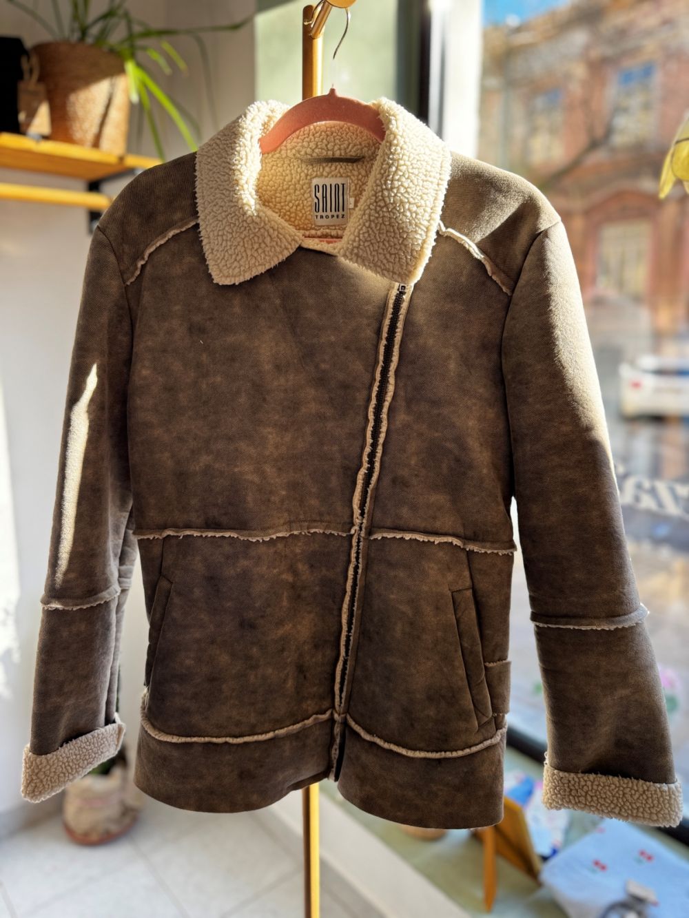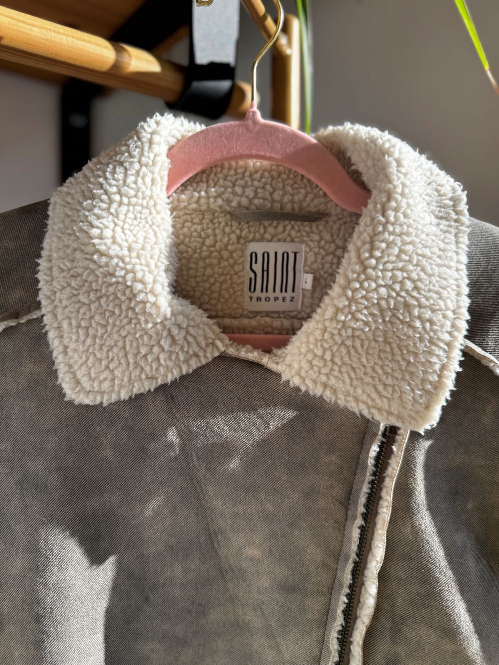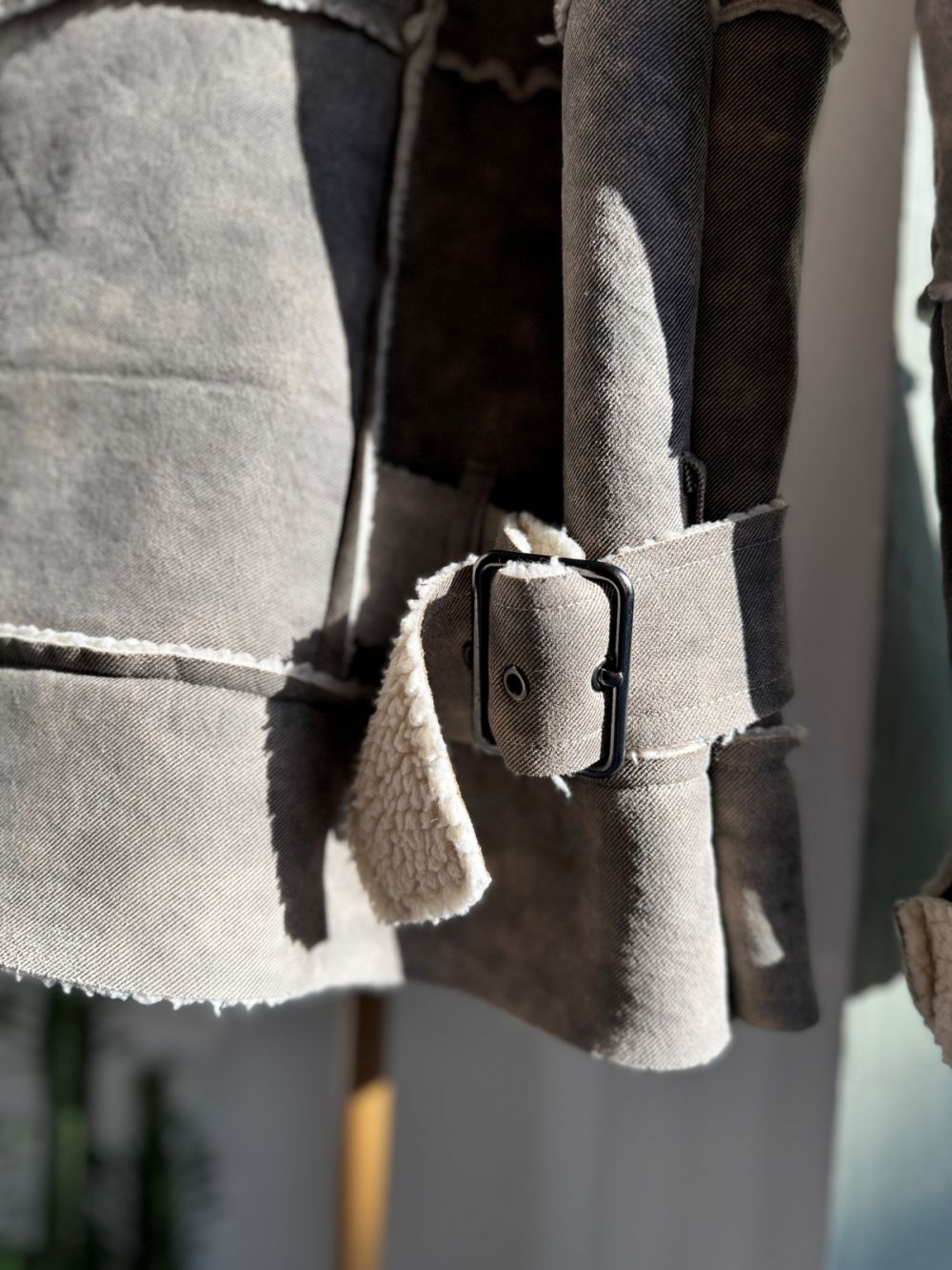 Ciepła kurteczka ze sztucznego futra w środku. Z zewnątrz jest w stylu "patchwork" co dodaje jej oryginalności. Z tyłu posiada dwa paseczki do regulowania szerokości.