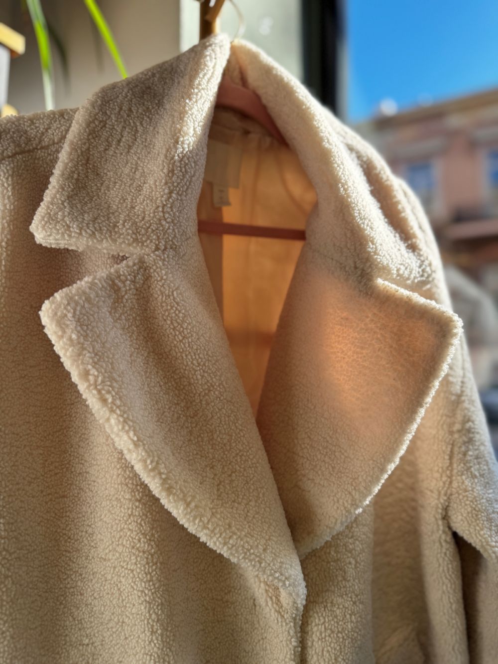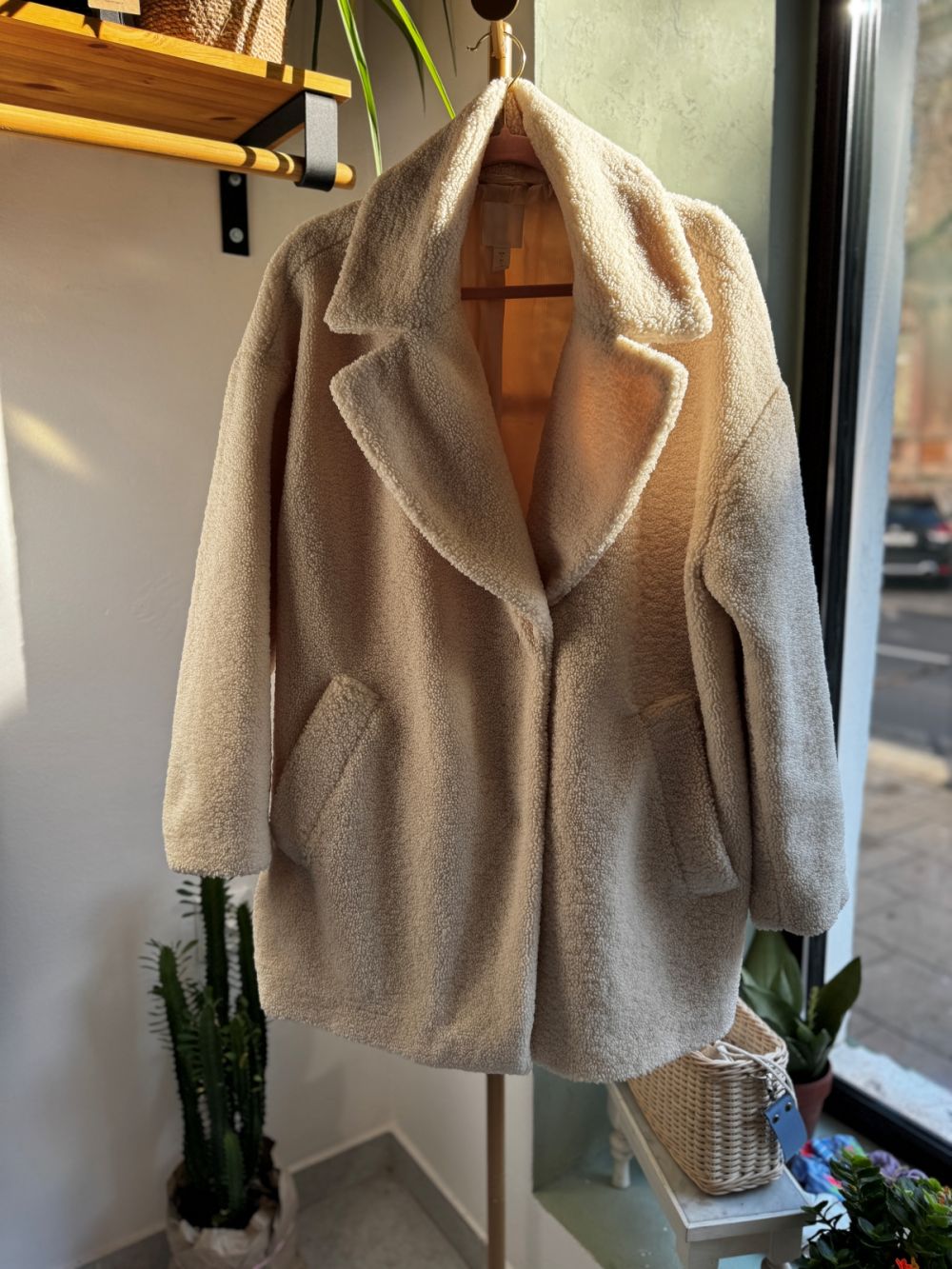 Długa kurteczka, posiada chowane guziczki dzięki czemu wygląda bardzo schludnie. Idealna na jesienne spacery w zimne wieczory.
