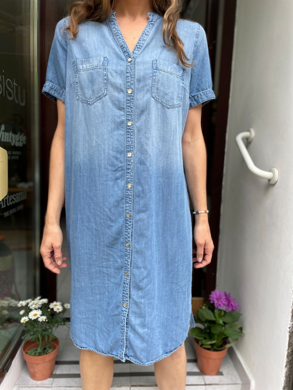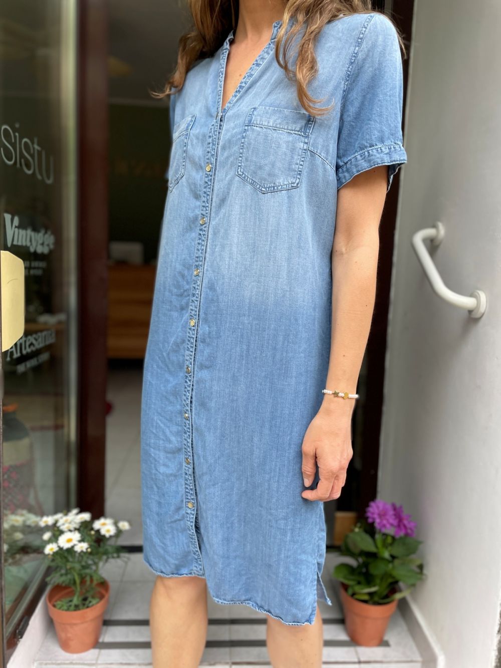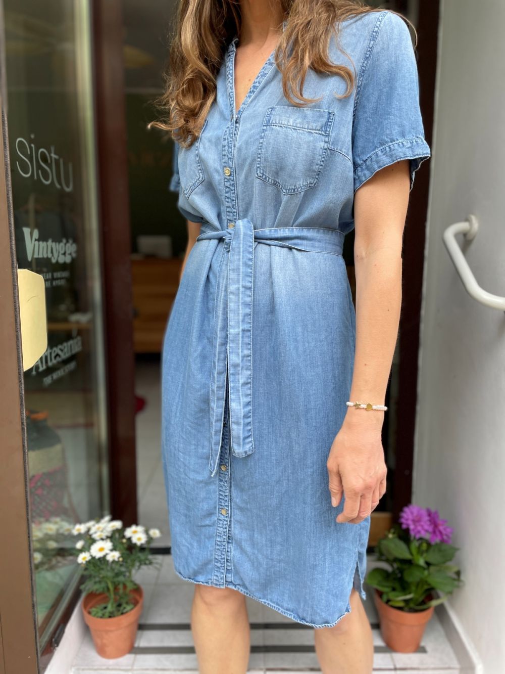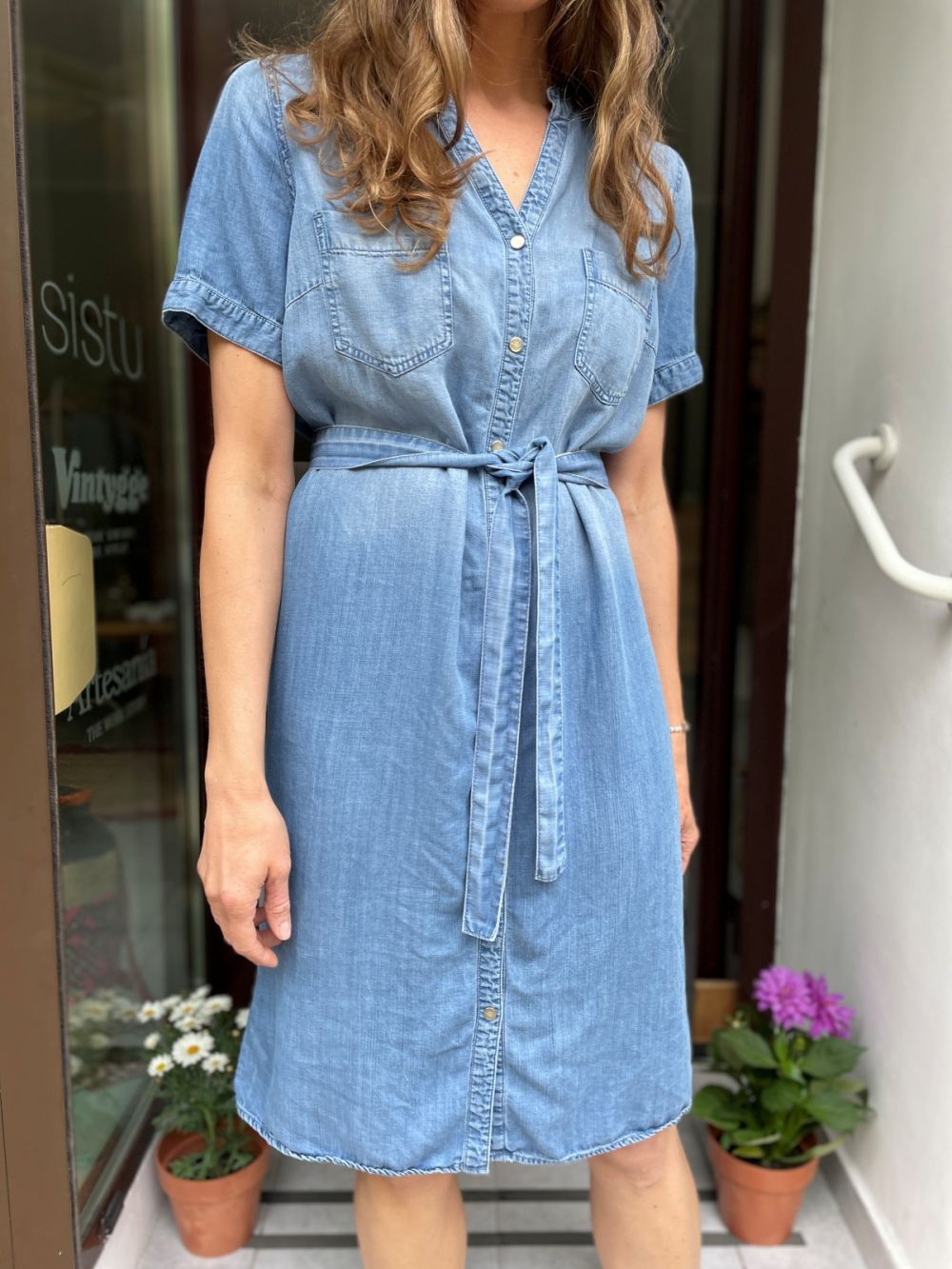 Sukienka szmizjerka denim. Można ją nosić z paskiem lub bez paska.
