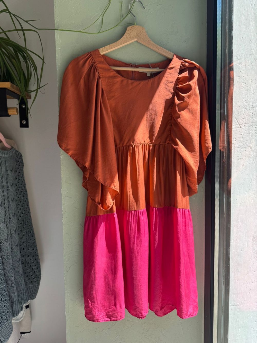 Śliczna jedwabna sukienka. Wykonana w 100% z jedwabiu, dzięki czemu jest lekka i przewiewna.