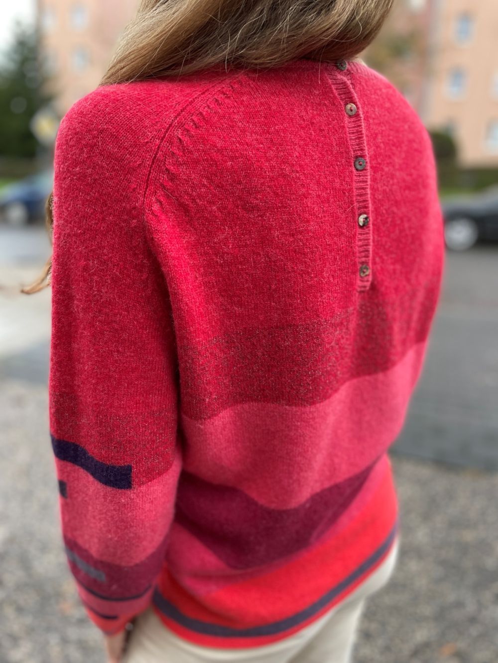Sweter malinowy w stylu vintage 100% wełna jagnięca Mansted